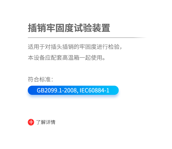 熱門關鍵詞: 插頭插座類檢測儀器 跌落、沖擊機械強度類檢測儀器 材料等級類檢測儀器(防火) IP外殼防護類探針